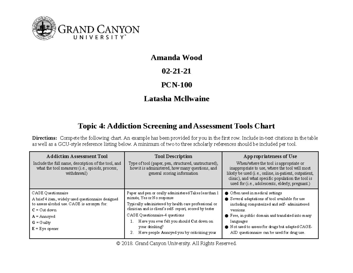 Pcn 100 Rs T4addiction Screening Assessment Tool Chart 1 5 2 Studocu